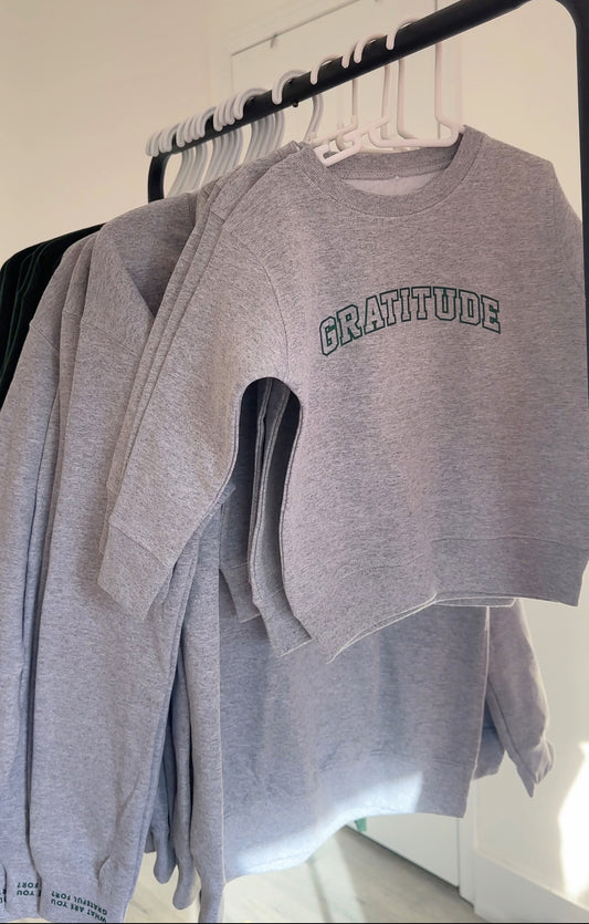 UNISEX Kids Gratitude Crewneck Sweater - Heather Grey